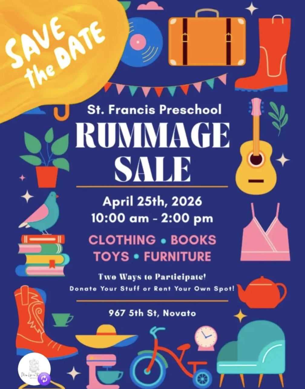 Come by the preschool at 967 5th Street in downtown Novato and shop our rummage sale! We have A LOT of inventory (kids clothes, toys, books, adult clothes, furniture, home goods, etc.) and all proceeds benefit the preschool.